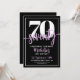 Eine schlichte und moderne Einladung zum 70. Geburtstag, perfekt um diesen Meilenstein im Stil zu feiern. Das schlichte Design ist mit einem fett schwarzen Hintergrund und einem prominenten "70" oben ausgestattet. Unten, "70" ist elegant in Skriptkalligraphie geschrieben, wodurch eine Touch der Raffinesse hinzugefügt. Der Text verbindet eine Mischung aus einfachen, modernen und lila Script-Schriftart und schafft einen auffallenden Kontrast zur schwarzen Kulisse. Ein weißer Rahmen rundet das Design mit einer Touch Eleganz ab. Diese Einladung eignet sich ideal für eine stilvolle Feier zum 70. Geburtstag. Die Hintergrundfarbe, die Schriftart und der Rahmen können alle an Ihren Stil angepasst werden. Moderne 70. Geburtstagsparty Einladung Black und Lilac Lila kühne stilvolle Seventieth Celebration. Erhältlich als gedruckte Einladung oder als digitale Einladung zum Herunterladen, dass Sie E-Mail senden können oder vor Ort gedruckt haben!