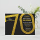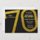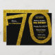 Eine klassische schicke und stilvolle 70. Geburtstagsüberraschung Party Einladung verfügt über eine schwarze und Imitat Gold Glitzer Farbpalette mit moderner Typografie. Einfache Anpassung mit eigenem Text für Ihre spezielle Veranstaltung.