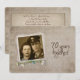 Offenes Haus zum 70. Hochzeitstag mit altmodischem personalisierten Foto-Rahmen und zartem Bouquet und Perlen.