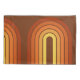 Ein bohemianisches gebogenes Design mit gestreiften Mustern und kreisförmigen Formen in Gelb-, Orange- und Ziegelrot. Ein kühnes, aber minimales Design mit einem optionalen Bereich zum Hinzufügen von Text.