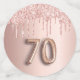 Girly und feminine Confetti für eine 70. Geburtstagsfeier. Eine Rose Gold Imitate metallisch, Folie aussehend mit Imitaten Rose Gold Glitzer Tropfen. Personalisieren und fügen Sie ihren Namen/Text hinzu. Dunkle Rose goldfarbene Buchstaben. Einige Konfetti-Chips mit Namen und Datum, andere mit der Nummer 70 geschrieben mit einem Ballon Stil Schriftart, und mit dem Text Happy Birthday.