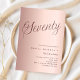 Eine moderne, stilvolle Einladung zu einer 70. Geburtstagsfeier. Rose goldener Farbverlauf und das Wort Siebzig geschrieben mit eleganten großen Drehbuchstaben in dunkler Rose Gold. Personalisieren und fügen Sie einen Namen und Party-Details hinzu.