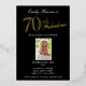 Elegante 70 und prächtige schwarze 70. Geburtstag Gold Foil Einladung. Goldfolie auf schwarzem Hintergrund. Fügen Sie Ihre Foto- und Party-Details hinzu.