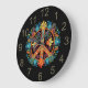 70er 60er Friedenszeichen farbig Große Wanduhr