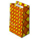 Diese Geschenktasche hat ein Design aus den 1970er Jahren solide gelbe Diamanten in braunen Diamanten Konturen auf einem Feld von orange.