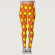 Diese Leggings haben ein Design aus den 1970er Jahren von massiven gelben Diamanten in braunen Diamanten-Konturen auf einem orangefarbenen Feld.