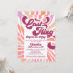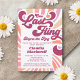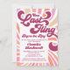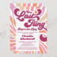 Feiern Sie ihr letztes Fliegen im Retro-Stil mit herrlicher 70er-Kalligraphie in dieser Junggeselinnen-Abschied-Einladung. Die dynamische, blubble-Schriftart Typografie und die Retro-Artwork verleihen diesem Design ein wildes, disco Ambiente. Ideal für Ihren Retro-Bachelorette-Bash. Bestellen Sie Ihre gedruckten Einladungen oder laden Sie Ihre digitalen Einladungen jetzt für einen Tag, den sie nie vergessen werden!
