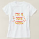 Teilen Sie Ihre Liebe während der Siebzigerjahre mit diesem bunten gelben und roten Entwurf mit Musiknoten und den Wörtern, die ich a-Siebzigerjahre Mädchen bin.