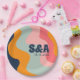 70er Retro Groovy Wavy Pastel Pink Blue Wedding Pappteller