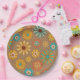 Gute Tage kommen 70er Jahre Papier Teller. Fun Retro-Design mit diesem feinen Gefühl. Aquamariner und goldener Blume Power auf einem Retro-Drehrad. Eine fabelhafte Hommage an die 70er Jahre. Das steht auf meiner Liste!