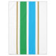 Dieses sportliche Design zeichnet sich durch einen weißen Hintergrund mit zwei hellblauen und kelly grünen Rennstreifen im Zentrum und warmen braunen Pinstreifen aus.