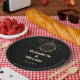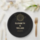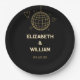 Diese Teller aus schwarz-goldfarbenem Retro-Disco-Groovy Hochzeitspapier können mit Ihren Informationen in der modernen Typografie personalisiert werden. Entwickelt von Thisisnotme©