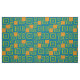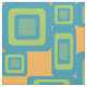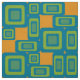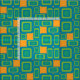 Gewebe inspiriert vom 60's-70s mit einem orange Hintergrund und stilistischen blauen Würfeln in den verschiedenen Größen und in den Formen.