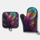 70s 60s Psychedelic Feathers Ofenhandschuh & Topflappen-Set