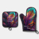 70s 60s Psychedelic Feathers Ofenhandschuh & Topflappen-Set