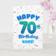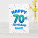 Celebrate their 70th birthday with a bright, cheerful, and personalizable birthday card! This custom name birthday card features a bold number seventy balloon and colorful confetti.