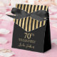 This elegant 70th Birthday Gold Striped Thank You favor box with shimmering gold faux foil, the birthday girl's name in a trendy script font, and tied with an elegant black bow would be perfect for your event. It would be great for a candy station, on a thank you gift table, or at each place setting with a favor. Be sure you order enough for all your guests.