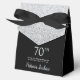 This fabulous modern 70th Birthday Silver Glitter Thank You favor box with sparkling silver glitter, the birthday girl's name in a trendy script font, and tied with an elegant black bow would be perfect for your event. It would be great for a candy station, on a thank you gift table, or at each place setting with a favor. Be sure you order enough for all your guests.