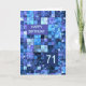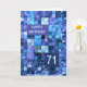 71. Geburtstagkarte. Herzlich willkommen zum Geburtstag mit einer eleganten Karte. Blaue und lila Quadrate bilden eine coole männliche Geburtstagskarte. Wünschen Sie einen guten Geburtstag und lächeln Sie gleichzeitig.