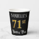 Dieses verzierte und elegante Geburtstagszeitpapier-Cup-Design zeichnet sich durch einen bearbeitbaren Namen und die Meldung "71st Birthday Party" aus. Die große Zahl "71." hat ein goldinspiriert Farbmuster von Imitaten/Imitationen, die Wörter "Geburtstagsparty" sind im luxuriösen Skriptstil gehalten, und der Hintergrund ist standardmäßig schwarz gefärbt (auch wenn er angepasst werden kann). Luxuriöse, opulente Papiertücher wie diese könnten bei einer Geburtstagsparty verwendet werden, um jemandes 71. Geburtstag zu ehren. [~Z0000567]