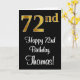 72. Geburtstag ~ Elegante Luxuriöse Imitate Gold L Karte