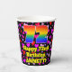 Dieses fröhliche und fröhliche Geburtstagskassensystem weist eine große Zahl "72" mit einem inspirierten Regenbogenspektrum auf, zusammen mit der Meldung "Happy 72. Birthday" und einem personalisierten Namen. Im Hintergrund zeichnen sich lila, rote und rosa Herzformen in verschiedenen Größen ab. Upbeat, fröhliche Papiertassen wie diese könnten Spaß machen, auf einer Geburtstagsparty zu feiern, die zur Feier von jemandem zum siebzigsten Geburtstag veranstaltet wird. [~Z0000548]