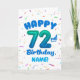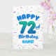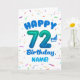 Celebrate their 72nd birthday with a bright, cheerful, and personalizable birthday card! This custom name birthday card features a bold number seventy-two balloon and colorful confetti.