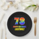 Dieses farbenfrohe, lustige und fröhliche Geburtstagspapier zeichnet sich durch eine große Zahl "73" und die Meldung "HAPPY BIRTHDAY" aus, beide mit einem inspirierten Farbverlauf des Regenbogenspektrums, zusammen mit einem kühnen gelben personalisierten Namen. Der Hintergrund ist schwarz. Teller wie diese können bei einer Geburtstagsparty zum 73. Geburtstag von jemandem verwendet werden. [~Z0000488]