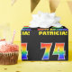 Dieses lustige, fröhliche und farbenfrohe Geburtstagsgepackte Papier-Design zeigt eine große Zahl "74" und die Meldung "HAPPY BIRTHDAY", beide mit einem Regenbogenspektrum inspirierte Musterfärbung, zusammen mit einem kühnen gelben editierbaren Empfängernamen. Der Hintergrund ist schwarz. Fun Geburtstag Thema Packpapier wie dieses könnte verwendet werden, um ein Geschenk oder Geschenk gegeben werden jemandem, der feiert ihren vierundsiebzig Geburtstag. [~Z0000475]