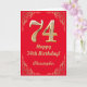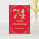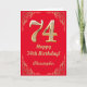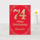 74. Geburtstag Rot und Gold Glitzer Rahmen Karte