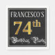 Dieses elegante und verzierte Geburtstagsmotiv mit Papierserviette ist mit einem bearbeitbaren Namen und der Meldung "74. Geburtstagsparty" ausgestattet. Die große Zahl "74." hat ein in Gold inspiriert Farbmuster, die Wörter "Geburtstagsparty" sind in opulentem Skripttext, und der Hintergrund ist standardmäßig schwarz (obwohl er angepasst werden kann). Luxuriöse, opulente Papierservietten wie diese könnten nützlich sein, um bei einer Geburtstagsfeier zu feiern, um jemandes vierundsiebzigsten Geburtstag zu ehren. [~Z0000565]