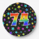 Dieses lustige, fröhliche und farbenfrohe Papier-Plattendesign zeichnet sich durch eine große Zahl "74" mit einem inspirierten Regenbogenspektrum aus. Der Hintergrund weist ein buntes Muster von Sternformen auf. Teller wie diese können bei einer Feier zu Ehren des vierundsiebzigsten Geburtstags von jemandem oder zum vierundsiebzigsten Geburtstag eines Ehepaars oder einer anderen 74. Veranstaltung genutzt werden. [~Z0000493]