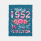 74 Year Old Made In 1952 Floral 74th Birthday Wome Fleecedecke