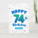 Celebrate their 74th birthday with a bright, cheerful, and personalizable birthday card! This custom name birthday card features a bold number seventy-four balloon and colorful confetti.