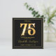 75. Geburtstag feiern Gold Back Front Elegante Einladung. Laden Sie Freunde und Familie zu einer Feier eines großen Meilensteins ein und ein langes und inhaltlich reiches Leben für eine besondere Person. Dies ist ihre (oder seine) Zeit zu leuchten. Diese quadratische Schwarz-Gold-Karte ist elegant und stilvoll. Die Vorderseite ist minimal mit Alter, Name und Datum in Gold und Glitzer. Die Rückseite hat die Adresse und uAwg info, alle in großen Buchstaben leicht lesbar.