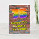 Dieses aufregende und lebendige urbane Straßenkunst und Graffiti inspirierte Geburtstagskartendesign zeigt eine große Zahl "75" mit einem farbenfrohen Regenbogenspektrum inspiriert Muster. Es enthält auch die Meldung "Happy 75 th Birthday", und einen benutzerdefinierbaren Namen. Der Hintergrund der Vorderseite weist ein Ziegelwandmuster auf. Im Inneren befindet sich eine individuell angepasste Geburtstagsgrüßbotschaft, oder man könnte sie löschen und leer verlassen werden, wenn eine Nachricht von Hand geschrieben werden soll. Eine bunte, editierbare Geburtstagskarte wie diese könnte zum Feiern des fünfundsiebzigsten Geburtstages von jemandem verschickt werden. [~Z0000586]