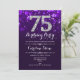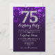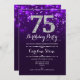 Einladung zum 75. Geburtstag. Elegantes lila Design mit Imitaten Glitzer Silber. Erwachsener Geburtstag. Mit Diamanten und Drehbuch Schriftart. Männer oder Frauen laden ein. Ideal für eine stilvolle Geburtstagsfeier. Nachricht, wenn Sie weitere Anpassungen benötigen.