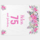 Elegantes Design für eine 75. Geburtstagsfeier mit rosa "75 und fabelhaft" und einem prägnanten Namen, der von einer femininen Aquarell-Blume auf weißem Hintergrund verziert wird. Anpassen von Alter, Text, Name und Hintergrundfarbe.