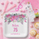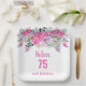 75. Geburtstag rosa Aquarell Blumenpapier Teller. Personalisieren Sie Ihre Daten mit Namen, Alter und Text.
