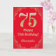 75. Geburtstag Rot und Gold Glitzer Rahmen Karte
