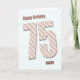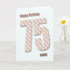 Eine sehr moderne 75. Geburtstagskarte. Diese Karte ist wirklich fabelhaft. Große Buchstaben in modernen Streifen auf blauem Hintergrund. Passen Sie Ihre individuelle Nachricht an.