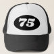 75. Geburtstags-Party der coolen Fernlastfahrerhutmänner! Addieren Sie Ihre eigene kundenspezifische Alterszahl. 71. 72. 73. 74. 75. 76. 77. 78. 79. 80. etc. Kappe IE 70. mit ovalem Logo mit Jahr- oder Alterszahl. Spaßzusatz für die Männer und Frauen, die fünfundsiebzig drehen. Spaß Headwear für Überraschungs-Partys. Groß für den Ehemann, Ehefrau, Großmutter, Onkel, Großvater, Vater, Großvater, Cousin, Bruder, Vati, besten Freund, Co-Arbeitskraft, Kollegen etc. verfügbar in allen Farben.