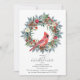 Ein eleganter roter Kardinal, eingebettet in einen Wintergrün-Kranz, lädt Gäste zu Ihrer Winter- oder Weihnachtsgeburtstagsfeier ein. Das Aquarell-Design zeigt einen schönen Kardinal und einen Kiefernkranz, der mit roten Blumen und Beeren sowie Kiefernzapfen dekoriert ist.