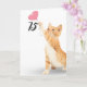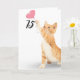 Goldene Tischkatze mit rosa Herzballon zum 75. Geburtstag auf weißem Hintergrund. Die Hintergrundfarbe kann geändert werden.