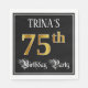 Dieses luxuriöse und verzierte Geburtstagsthema besticht durch einen personalisierten Namen und die Botschaft "75. Geburtstagsparty". Die große Zahl "75." hat ein in Gold inspiriert Farbmuster von Imitation/Imitaten, die Wörter "Geburtstagsparty" sind in opulentem Skripttext, und der Hintergrund ist standardmäßig schwarz gefärbt (auch wenn er angepasst werden kann). Elegante, opulente Papierservietten wie diese könnten bei einer Geburtstagsfeier zum 75. Geburtstag von jemandem nützlich sein. [~Z0000565]