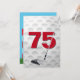 Nahes, weißes Golfspiel mit einem Golfclub zum 75. Geburtstag. Alter ist essbar. Alle Texte auf der Rückseite können geändert werden. Die Farbe des blauen Himmels kann geändert werden.