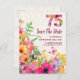 Mit dieser eleganten 75. Geburtstagskarte kündigen Sie Ihren besonderen Meilenstein im Stil an. Mit einem weichen Leinenhintergrund und einem lebendigen Blumenmuster "75" ist dieses individuell gestaltbare Design perfekt für die Einladung von Lieben zu Ihren Feiern. Viel Spaß!