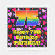 Dieses bunte und fröhliche Geburtstagsthema Papier Serviette Design zeichnet sich durch eine große Zahl "75" mit einem Regenbogenspektrum inspirierten Muster aus. Es enthält auch die Meldung "Happy 75 th Birthday", und einen bearbeitbaren Namen. Der Hintergrund weist rosa, lila und rote Herzformen auf. Fröhliche, glückliche Papierservietten wie diese könnten sich bei einer Geburtstagsparty zum 75. Geburtstag von jemandem amüsieren. [~Z0000550]