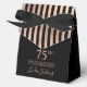 This elegant 75th Birthday Rose Gold Striped Thank You favor box with shimmering rose gold faux foil, the birthday girl's name in a trendy script font, and tied with an elegant black bow would be perfect for your event. It would be great for a candy station, on a thank you gift table, or at each place setting with a favor. Be sure you order enough for all your guests.