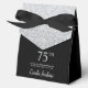 This fabulous modern 75th Birthday Silver Glitter Thank You favor box with sparkling silver glitter, the birthday girl's name in a trendy script font, and tied with an elegant black bow would be perfect for your event. It would be great for a candy station, on a thank you gift table, or at each place setting with a favor. Be sure you order enough for all your guests.